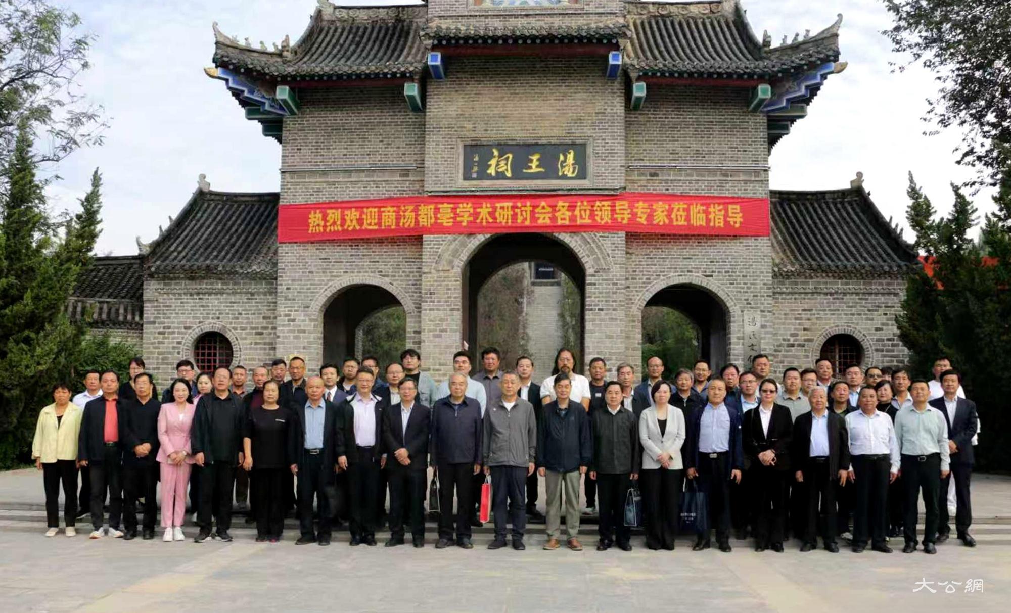 研讨会后,与会人员共同到商汤庙参观调研并合影留念。商汤庙,又称汤王祠,位于睢阳区坞墙镇南亳村,其主体建筑汤王台是一座18米高的高台。商汤庙2011年被公布为商丘市重点文物保护单位。南亳村2016年被列入“河南省传统村落”名录。2022年,汤王台被授予第一批“商丘市根亲文化研学基地”称号。