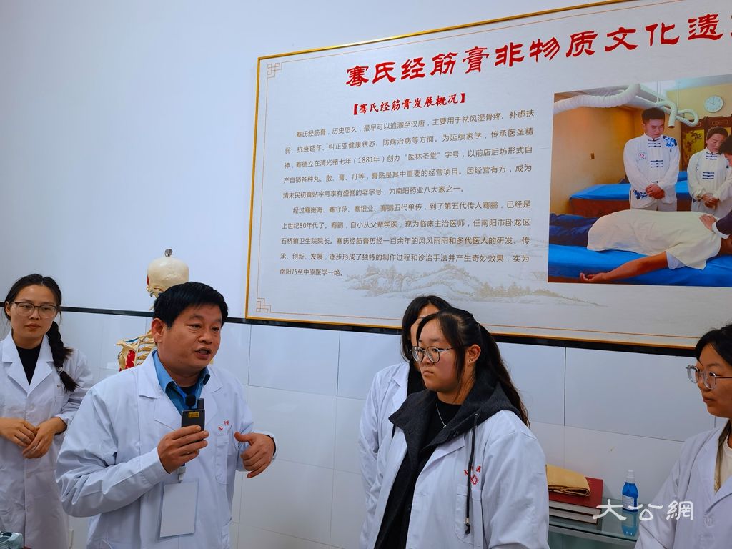 骞式经筋膏非遗传承人骞鹏向学生们传授中医药知识。王孟飞 摄