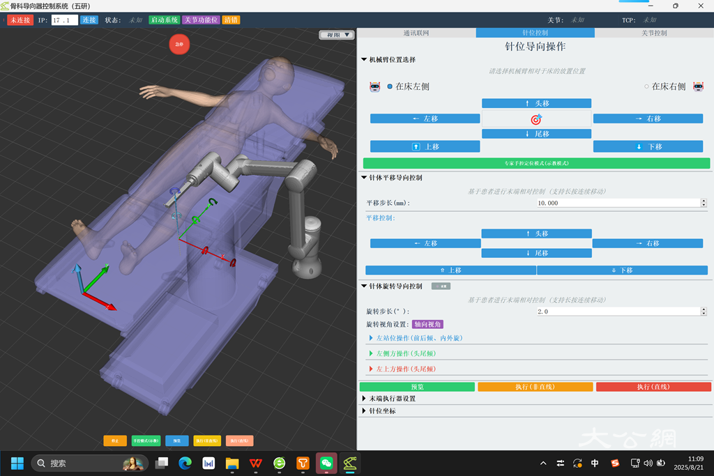 国家中医(骨伤)区域医疗中心五大中心秘书长、三级主任医师、博士生/博士后导师成永忠向采访团介绍:“这是我们的智能接骨机器人系统,能够解决骨折牵拉复位。比如上肢骨折,可以用机械臂的人机交互模式,医生拖动机械臂抓住病人的肘关节等受伤部位,做好复位,复位之后就可以做闭合穿针。”