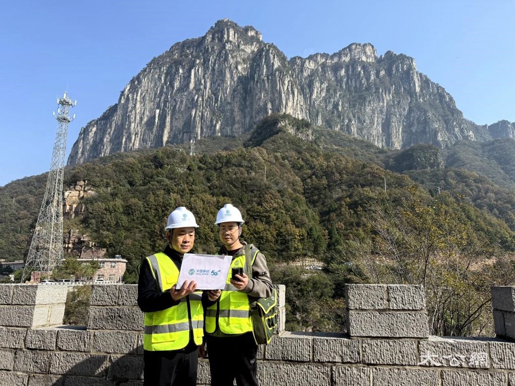 移动人员在郭亮村壁挂公路优化网络。梁茹 摄