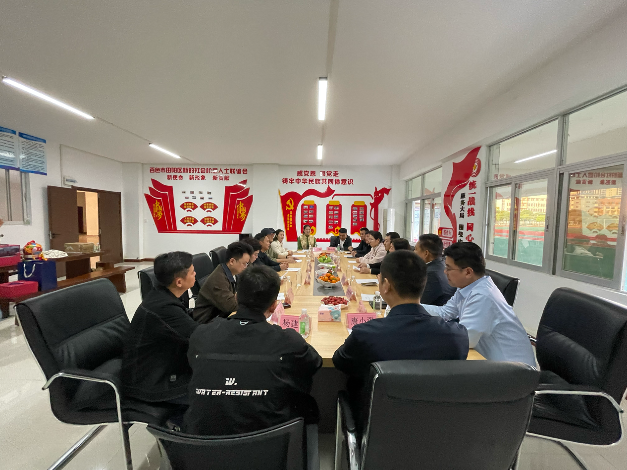 随后,登封市考察团与百色市田阳区统战部、新联会举行专题座谈会。会上,两地统战部、新联会负责人分别介绍了统战工作、民族工作、新联会建设的经验做法。