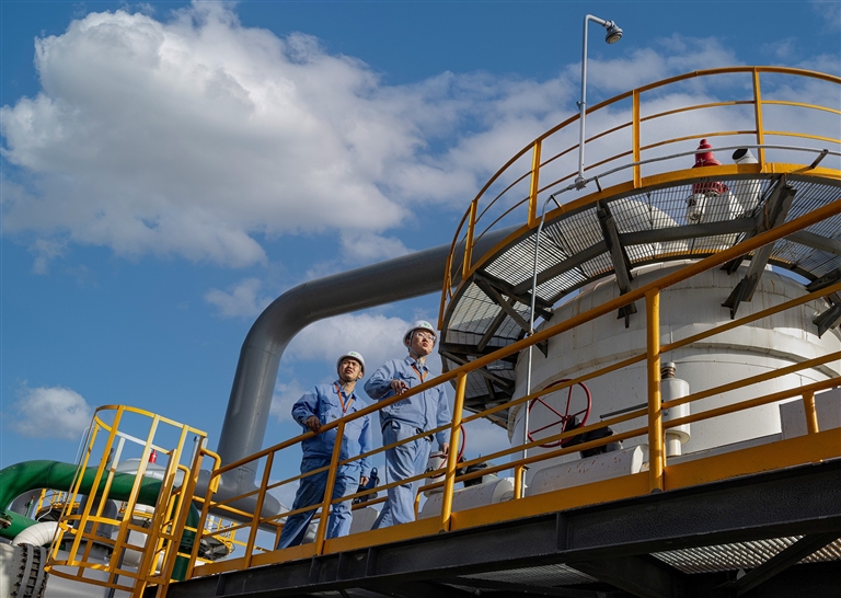 中国平煤神马集团氢化学公司气化车间职工在装置区巡检。 平煤神马集团宣传部供图