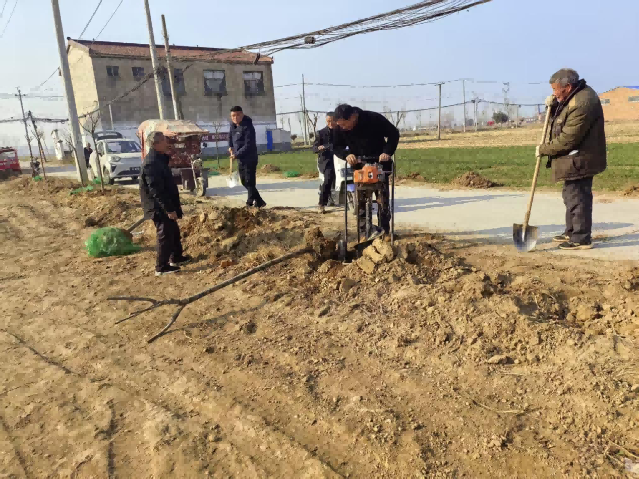在植树现场,村民们不畏严寒,分工协作、干劲十足。有人操作钻孔机械,在泥土中钻出一个个标准树坑;有人忙着从货运车上卸运成捆的树苗,将苗木小心转运至种植点;还有人手持铁锹修整坑体、准备定植,机械的轰鸣声与铁锹的碰撞声交织,奏响了冬日国土绿化的奋进乐章。