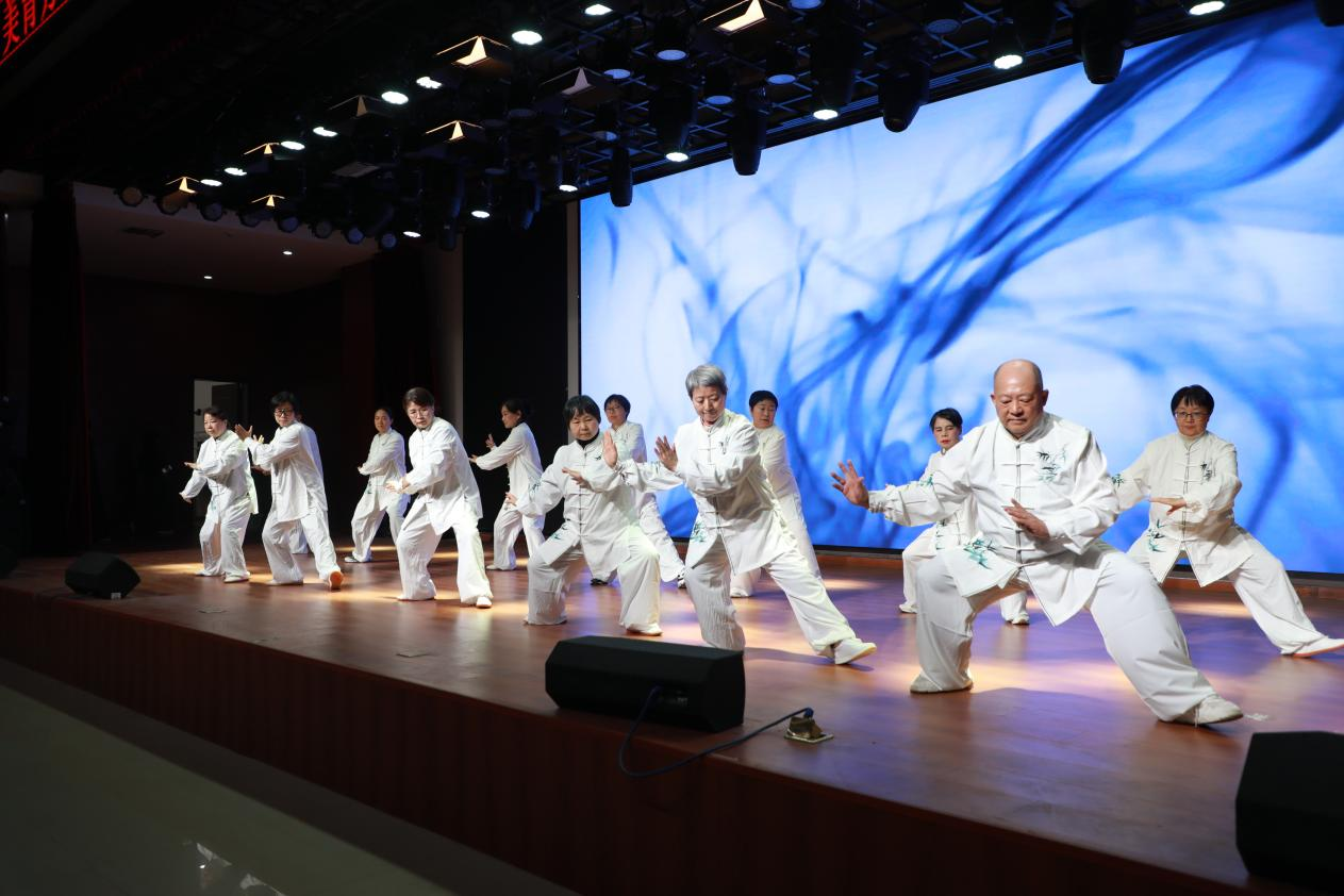 演出形式丰富多元,内涵积极向上,贯穿美育浸润与文化传承的主线。摄影展播《拾秋遇冬·光影摄影展》与AI创作《AI我河南》体现了老年学员拥抱科技、记录美好的创新意识;茶艺展示《弦歌伴茶·六堡悠然》与舞蹈《入画江南》则浸润着江南雅韵与文化传承的深远意境。社区团队也倾情奉献了走秀《江南情》、太极扇表演及舞蹈《迎酒欢歌》等节目,展现出基层群众文化的蓬勃生机。