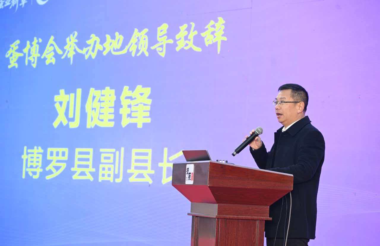 博罗县副县长刘健锋致辞,热烈欢迎全球蛋业精英齐聚博罗。他指出,博罗地处粤港澳大湾区核心,生态优越,正依托“粤港澳大湾区(广东·惠州)绿色农产品生产供应基地”,推动现代农业向规模化、标准化、品牌化、数字化升级。此次蛋博会聚焦绿色养殖、智能装备、精深加工、冷链物流、数字营销等全产业链环节,与博罗产业发展方向高度契合。博罗将全力当好“服务员”,以最优营商环境保障参展企业投资兴业;架好“合作桥”,推动产销精准对接,助力优质蛋品链接湾区、走向世界;种好“示范田”,打造绿色低碳、科技创新的“博罗样板”,并力争将泰美小镇建设成全球知名的“蛋食品之都”。
