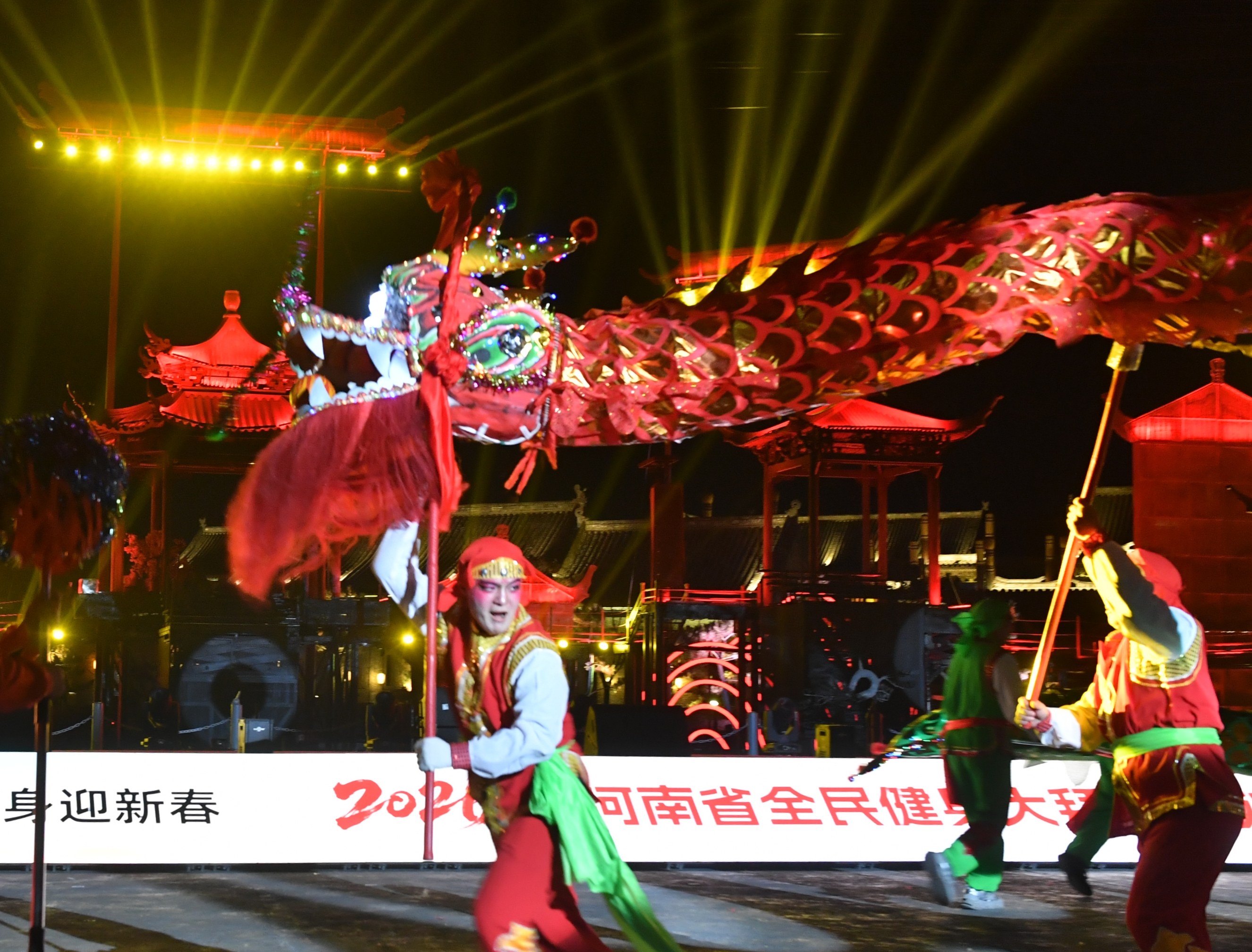 雄狮闹春,火龙舞,箜篌引,英歌舞……2月6日晚间,2026年河南省全民健身大拜年活动启动仪式在河南郑州中牟新区电影小镇举行,来自全省非物质文化遗产传承人和优秀展演队员以运动为媒、以健康为礼,为全省人民送上新春祝福,用运动点燃了新年的激情,用欢笑传递了健康的理念,更用陪伴温暖了寒冷的冬日。