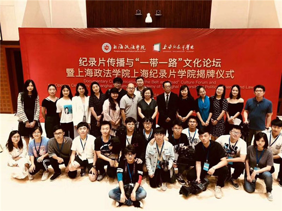 纪录片传播与“一带一路”文化论坛暨上海政法学院上海纪录片学院揭牌仪式于6月24日上午,在上海政法学院上合组织培训基地207会议室隆重举行。中央新闻记录电影制片厂副总裁赵捷,中国教育电视台总编辑胡正荣,中国传媒大学传播研究院院长雷跃捷,上海视觉艺术学院副书记俞振伟,上海市教育台常务副台长陆生,上海广播电视台纪实频道副总监李涛,上海政法学院校长刘晓红、党委副书记刘刚、副校长胡继灵出席论坛开幕式。来自我国40余所高校的专家学者、业界人士、新闻记者、学校各部门领导等200余人见证揭牌仪式。