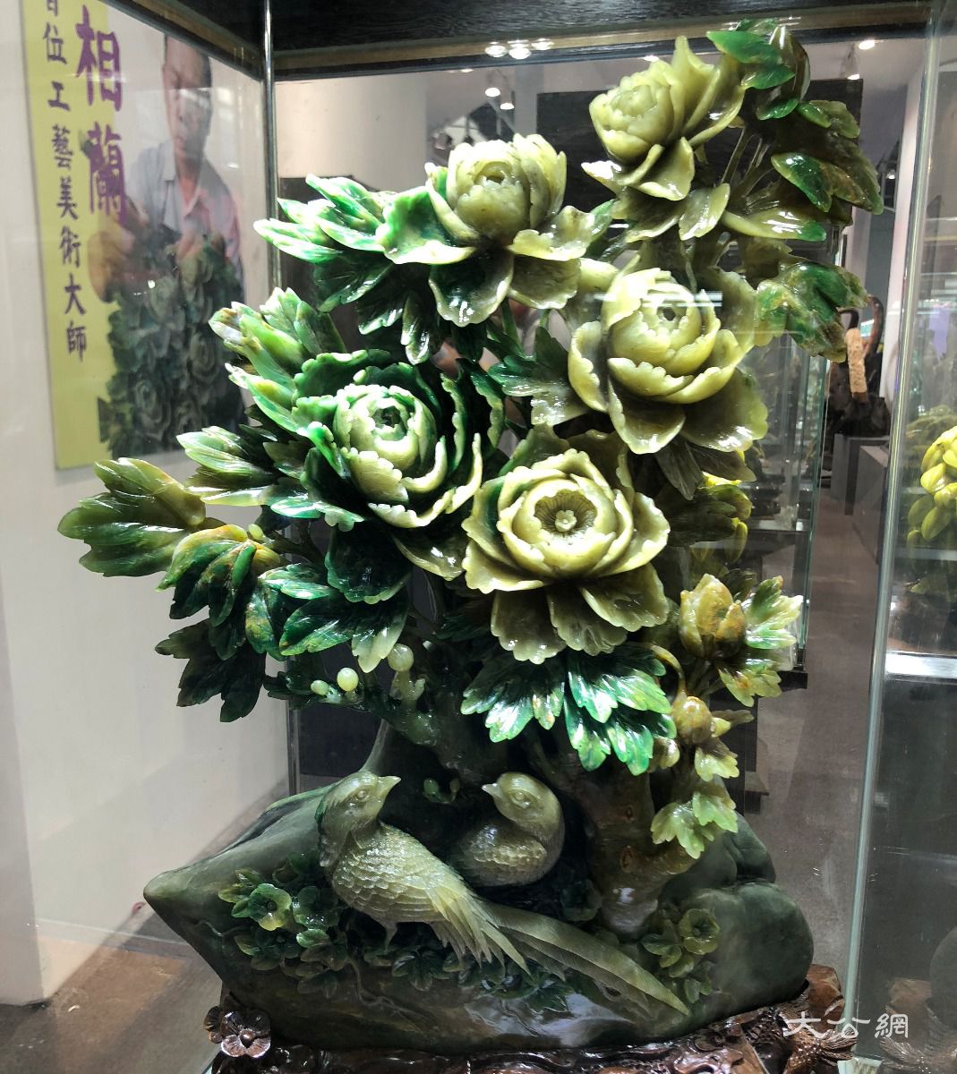 香港地区首位“中国工美行业艺术大师”邓相兰创作玉雕《锦上添花》。(方俊明摄)