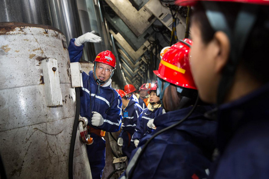 图:媒体记者在国家能源集团神东上湾煤矿井下12401综采工作面,了解公司综采工作面设备运行、检修、生产劳动组织、生产效率等情况