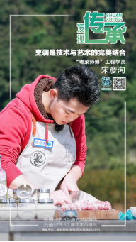 学习厨师专业一年半以后,宋彦洵被选中参加了《发现大厨》。这是一档厨艺竞技节目,结合了广东省推出的“粤菜师傅”贫困青年技能培训工程,由碧桂园、国强公益基金会携手国华文旅集团共同打造。6位大厨与6位“粤菜师傅”学员,通过厨艺竞技比赛,弘扬岭南文化、传承粤菜精髓,帮助贫困地区农产品打开销路,助力消费扶贫和乡村振兴。同时,让贫困地区青年在实践中成长为“新时代的粤菜传承人”,获得就业上升通道,实现“一人学厨,全家脱贫”。