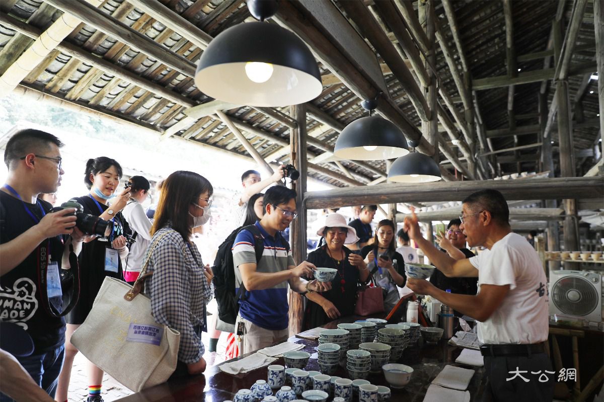 采风团成员走进古窑民俗博览区,感受景德镇瓷器“白如玉,明如镜,薄如纸,声如磬”的特色。/黄慧摄