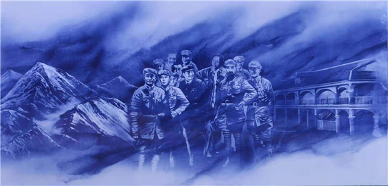百米青花长卷《光辉足迹》部分片段。