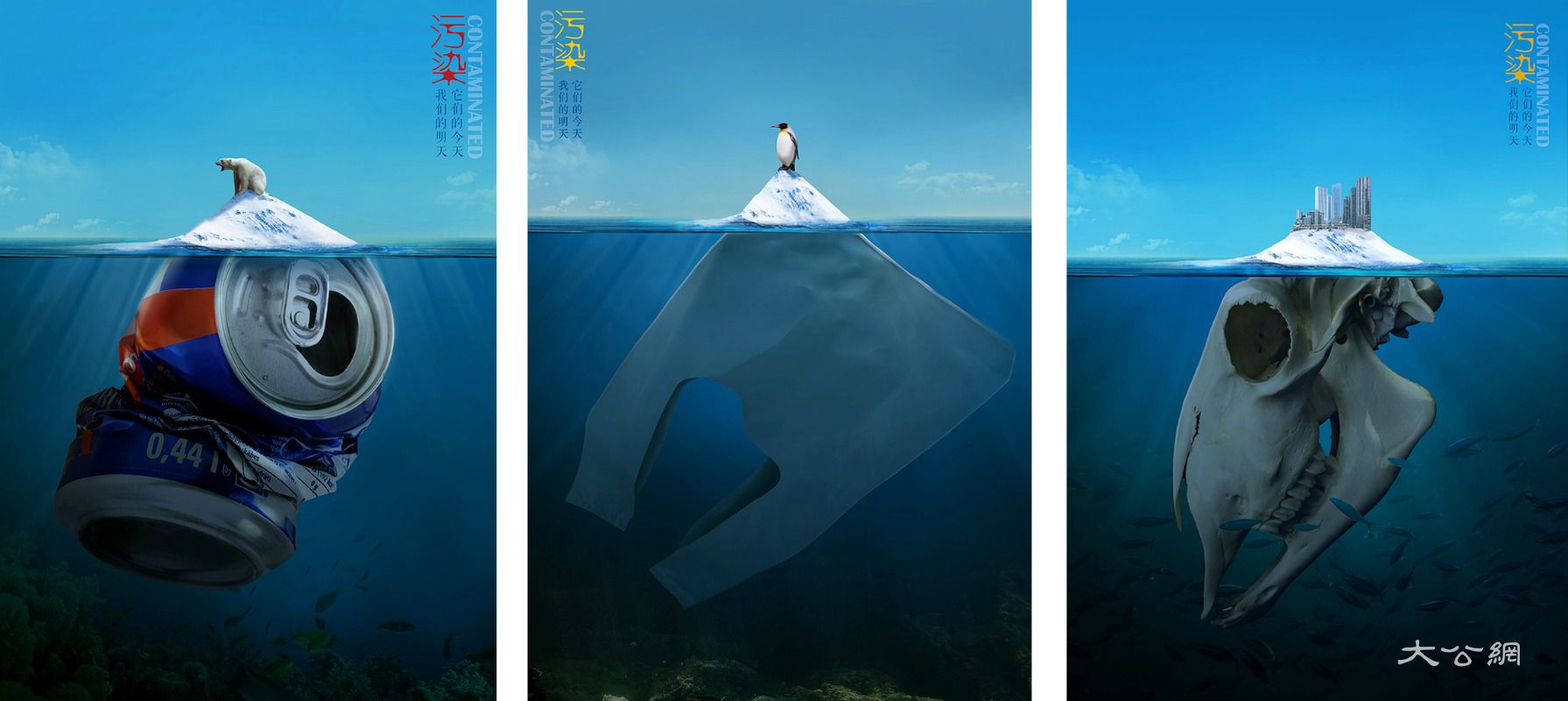 (图1:“第五届全国大学生网络文化节公益广告评选”平面类获一等奖作品《人与自然》)
