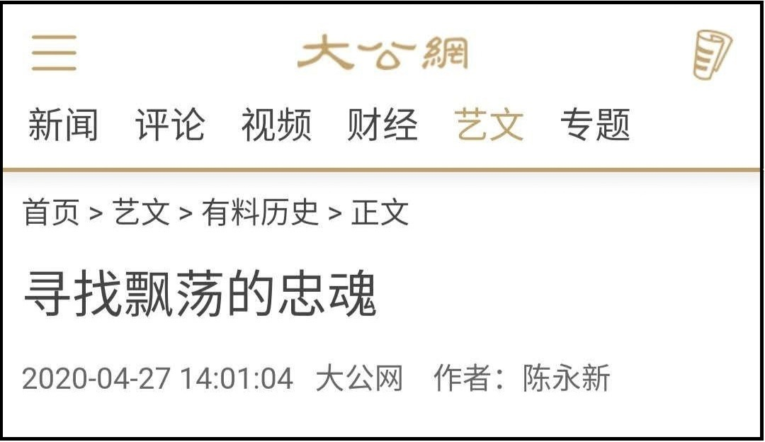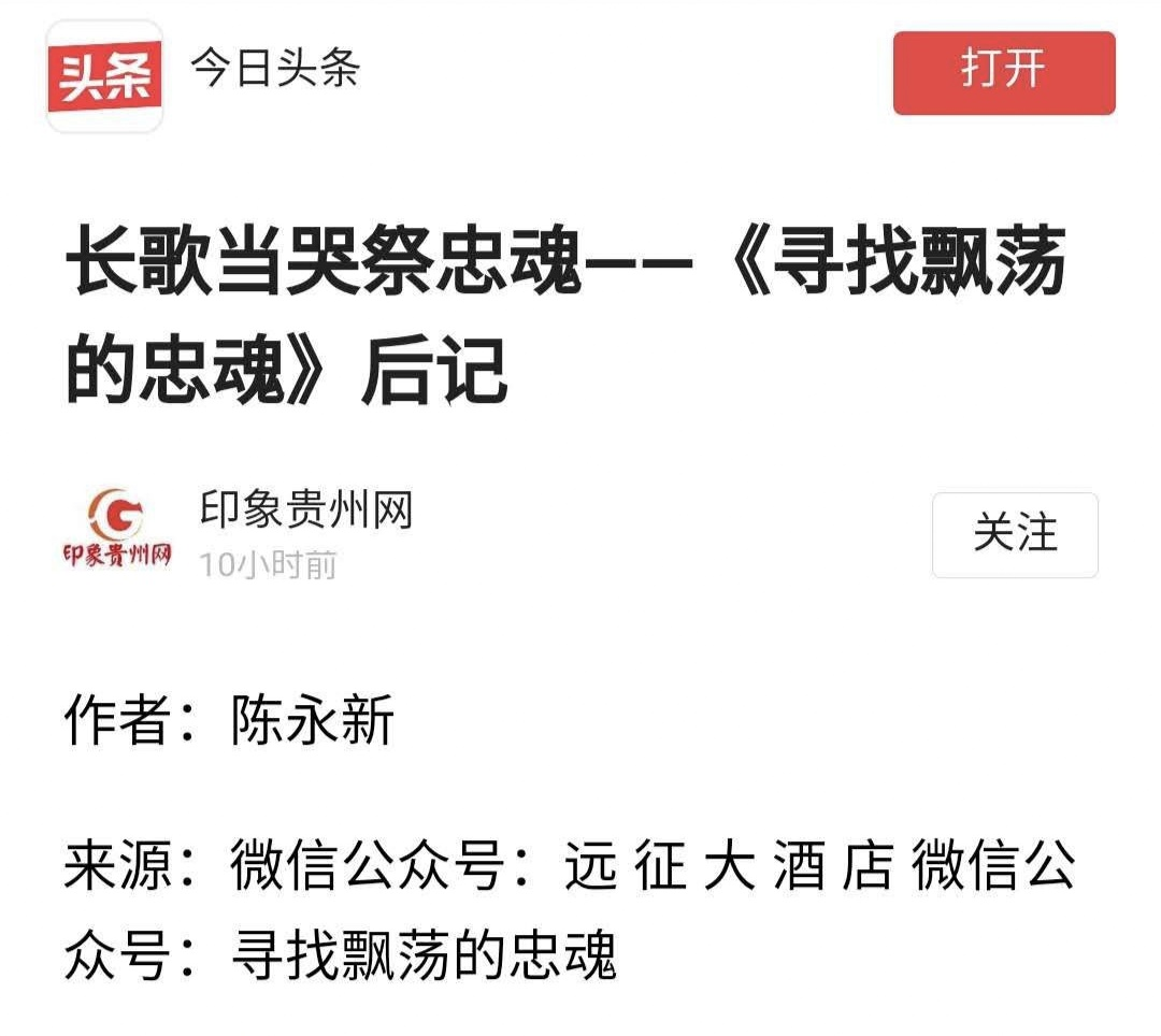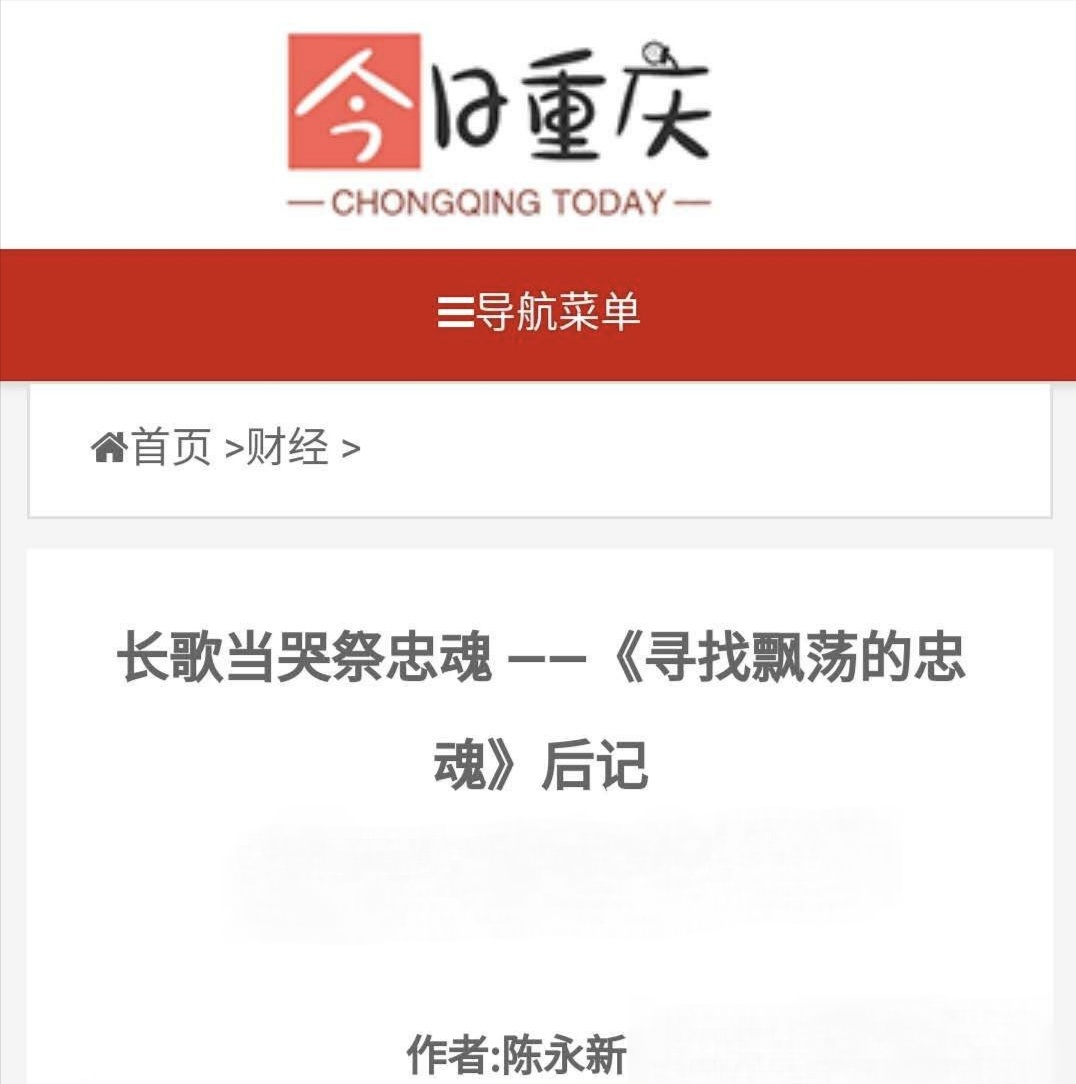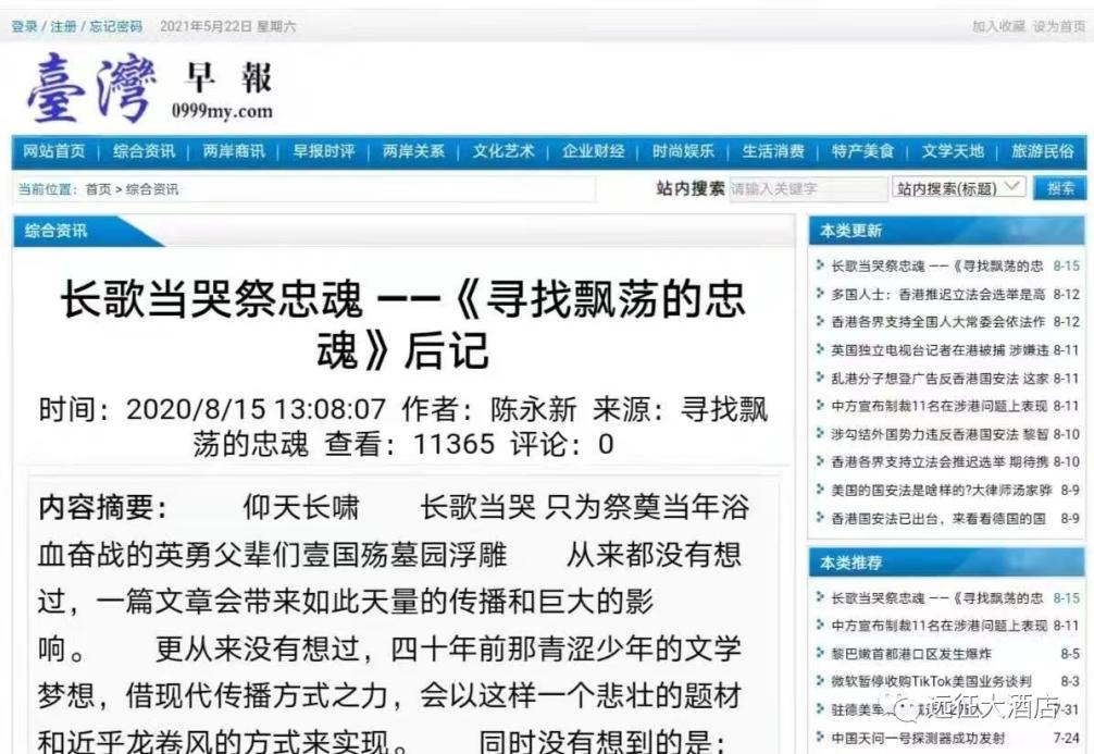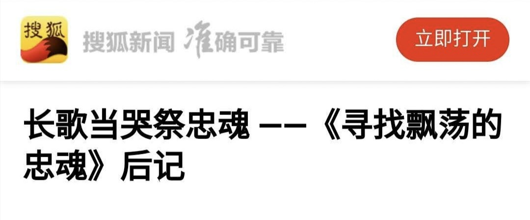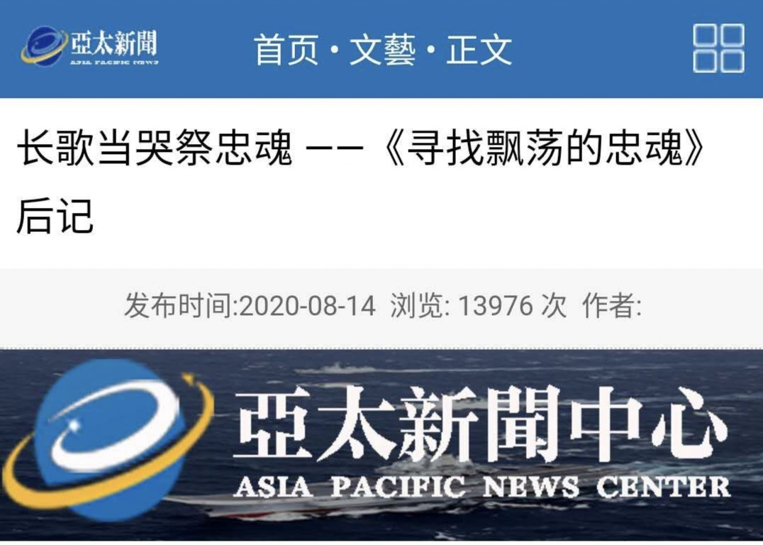 另外,海外多家知名媒体网站中文版今年五月曾刊登过拙文《寻找飘荡的忠魂》,在海外华人中引起了巨大的反响。