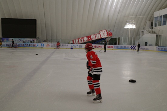 在启迪冰雪体育中心内学习冰球的学员 /记者 龚超 摄