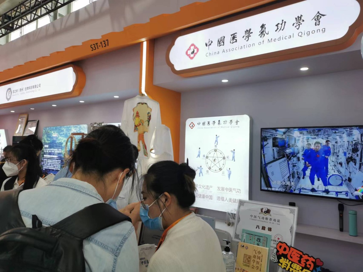 展位工作人员告诉记者,他们这几天一直比较忙,从宣传中医气功文化、科普中医气功知识、展示中医气功功法到普及正确气功理念,并现场教授五行掌、八段锦等中医气功功法,吸引了人群,有的现场跟练。