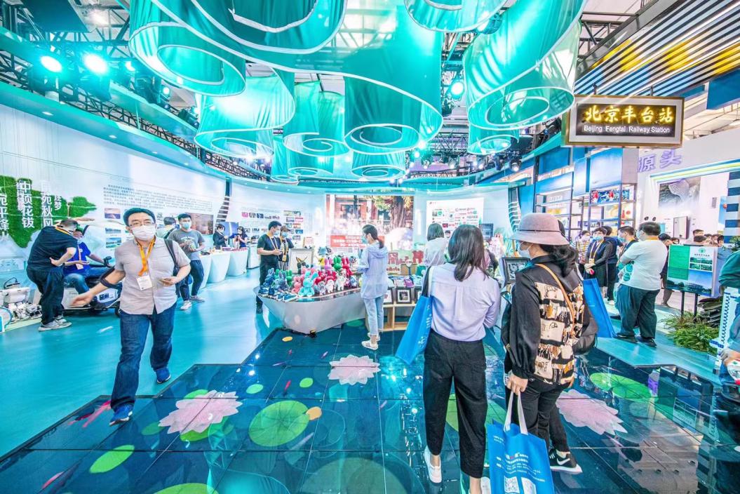 服贸会文旅服务专题展上,作为首都“四个中心”功能的集中承载地区,丰台区围绕服务首都全国文化中心建设,以“妙笔生花 丰采无限”为主题,融合“青山绿水,花好月圆”设计理念,为市民打造了“可看、可听、可触、可感、可交互”的多功能沉浸式复合空间,5天共计参观游客5万余人次。