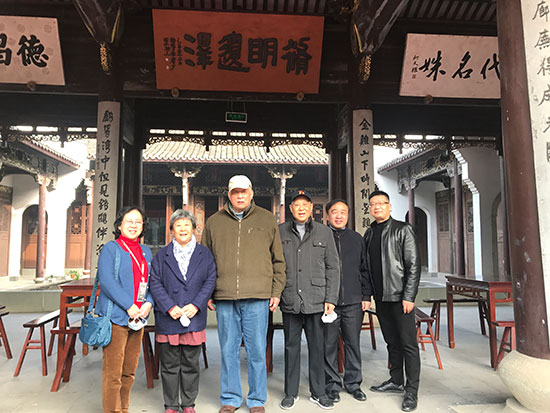 游览西施故里。左起:杜恒女士,黄惠南女士,张纪祖先生,谢继民先生,李季平先生,本文作者。