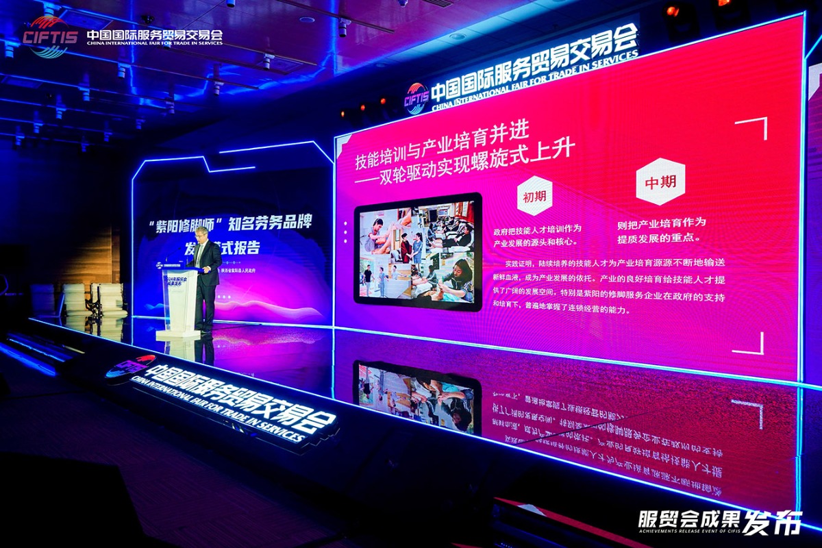 2024年中国国际服务贸易交易会(简称“服贸会”)于9月12日-16日在京举办,9月15日,“紫阳修脚师”知名劳务品牌发展新模式在服贸会成果发布厅亮相,中共紫阳县委常委、副县长马龙向全球讲述紫阳修脚产业发展的独特故事。