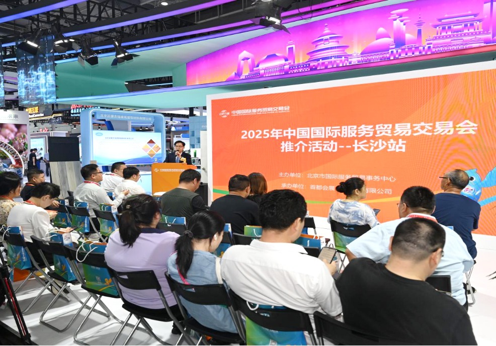 6月13日,2025年中国国际服务贸易交易会(简称服贸会)长沙站推介活动在第四届中国-非洲经贸博览会的北京展区成功举行。活动全面介绍2025年服贸会最新变化,重点推介工程咨询与建筑服务专题、环境服务专题,现场吸引众多相关企业机构代表及展客商参会。