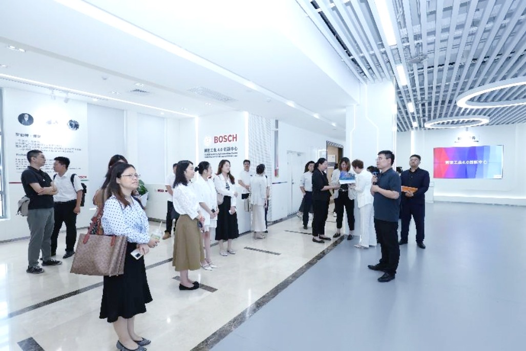 博世工业4.0创新中心由顺义区人民政府与世界500强企业德国博世集团共建,现场向展联成员展示了在汽车与智能交通、工业技术、消费品及能源与建筑技术等方面的智能制造成果,讲述了创新中心立足于德工工业4.0的先进理念和全球工厂的领先实践,及深度服务中国本土制造业转型升级的情况。