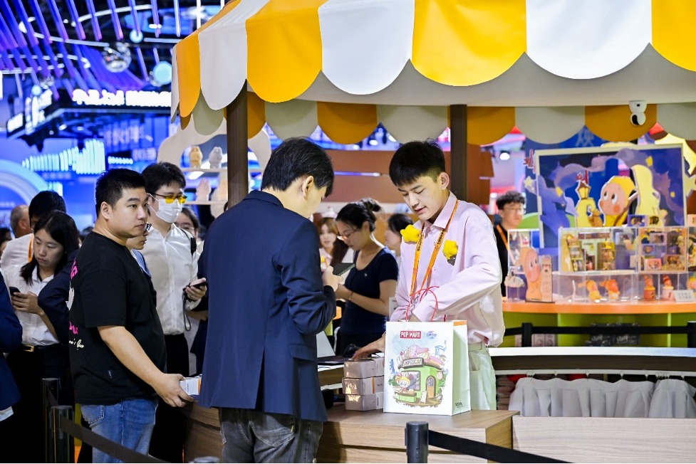 在2025年服贸会泡泡玛特展台,观众排队购买创意甜品