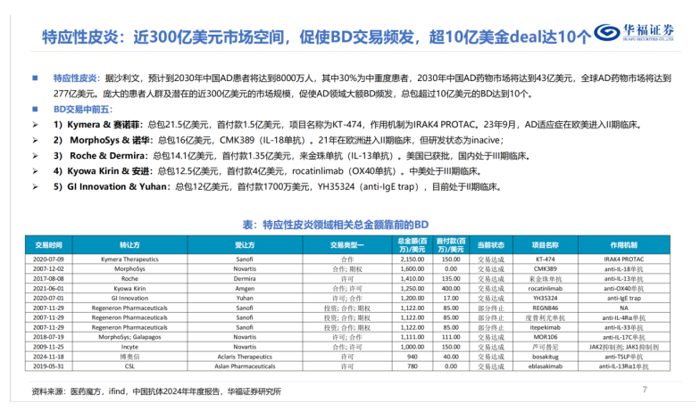 JAK抑制剂乌帕替尼虽起效快但存在严重安全性风险;IL-31R抗体奈莫丽珠单抗虽能有效改善瘙痒症状,但皮损改善效果不理想,需与外用糖皮质激素联用。即便是年销售额超140亿美元的“药王”度普利尤单抗,在快速起效止痒方面仍不能满足市场需求。综合来看,特应性皮炎市场仍有巨大未满足的需求。。