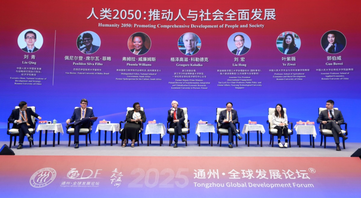 在学者圆桌环节,聚焦“人类2050:推动人与社会全面发展”主题,格泽高滋·科勒德克,南非国家行政学院杰出研究员、前内阁发言人弗姆拉·威廉姆斯,新加坡南洋理工大学协理副校长(国际事务)、陈六使讲席教授(公共政策与全球事务)刘宏,中国人民大学农业与农村发展学院教授叶紫薇,巴西巴伊亚联邦大学副校长佩尼尔登·席尔瓦·菲略,中国人民大学应用经济学院副教授郭伯威围绕如何认识人类社会发展面临的重要挑战及其背后的思想渊源、新的发展理念需要在哪些方面进行创新与超越、如何完善“人与社会全面发展”理念及其实践战略构想、如何在国际社会推动“人与社会全面发展”理念成为共识等问题展开对话交流。中国人民大学国家发展与战略研究院执行院长、经济学院教授刘青主持。