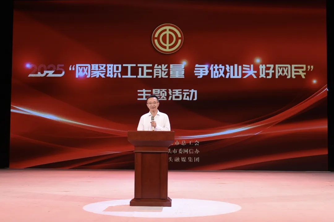 10月19日晚,市总工会和市委网信办在汕头融媒集团综合剧场举办2025年“网聚职工正能量 争做汕头好网民”总结颁奖大会,为工会网上思想政治工作创新案例、网络正能量音乐作品、网络正能量微短剧微宣讲视频、职工正能量网络达人账号的各个十佳作品颁奖。市人大常委会副主任、市总工会主席马翔出席活动并讲话。市总工会党组书记、常务副主席程晓群,市委宣传部副部长、市委网信办主任郑宋梨,市融媒中心党委副书记、总编辑林少雯参加活动。