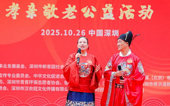 26日,近百对来自深港两地的金婚银婚夫妇,身着华美汉服,齐聚深圳锦绣中华民俗村锦绣盛世广场。他们以岁月为礼,以深情为约,共同拉开了第七届“金婚银婚·鉴真情-孝亲敬老公益活动”的动人序幕。