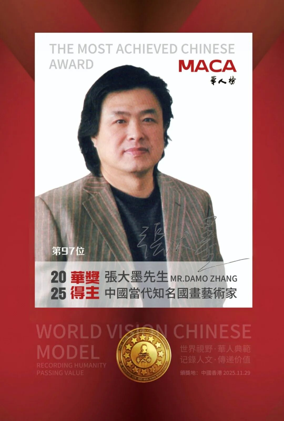 本届颁奖礼上,香江1号未来生活艺术研究院共同院长张大墨先生荣获全球华人奖杰岀艺术家奖项。凭其在艺术领域的巨大成就与“香江1号”这一开创性艺术作品中的卓越贡献,获得评审委员会的高度认可,成为首位获得世界华人榜杰出华人奖的画家。