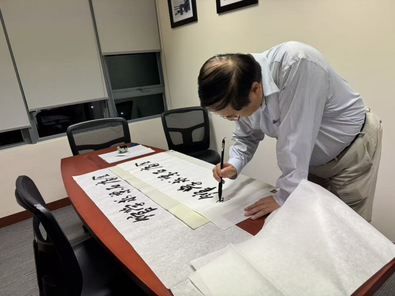 一份承载着衢港深情厚谊的珍贵礼物——“金庸石梁求学馆”墨宝,转交衢州一中。此墨宝由香港中文大学商学院周林院长慨然惠赠,由完霞校友代为转呈,充分体现了各方对金庸求学馆的厚意与对文化传承的重视,期待成为一段联结衢港文化交流的佳话。