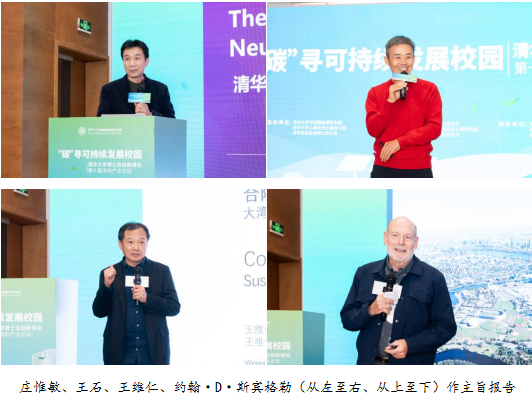 论坛期间,多位行业权威专家发表主旨演讲,共同探索绿色发展新路径,为“碳中和”目标下的校园与社区建设提供多元视角与创新思路。庄惟敏以“清华大学校园碳中和规划”为题,从清华视角阐释绿色校园建设方案,提出综合性实施路径。王石围绕“社区碳中和”专题作分享,结合实践案例剖析社区“双碳”目标创新模式与社会协同机制。香港大学建筑学院李景勋建筑设计教授王维仁聚焦“深港大湾区可持续校园设计”,阐释了融合地域文化与生态景观的设计策略。哈佛大学陈曾熙公共卫生学院讲席教授约翰·D·斯宾格勒(John D. Spengler)通过“哈佛大学可持续校园发展纲要”主旨演讲,分享了该校在能源效率提升、资源循环利用及健康生态构建等方面的全球经验,为高校可持续发展提供国际范本。