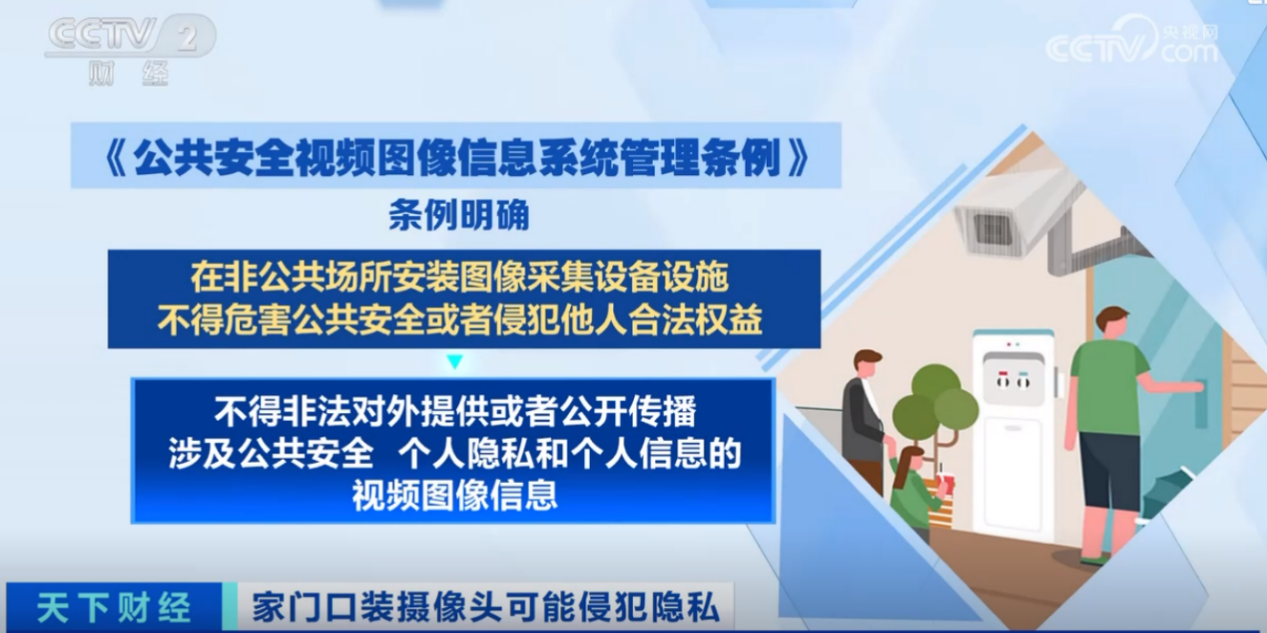 此外,我国《公共安全视频图像信息系统管理条例》也为智能门锁等设备确立了规范。《条例》指出,在非公共场所安装图像采集设备不得危害公共安全或侵犯他人权益,不得非法公开或传播涉及公共安全、个人隐私的视频图像信息。用户在自家门口安装虽不违规,但须注意使用方式是否影响他人权益,对采集到的公共区域信息必须依法使用,严禁非法传播。