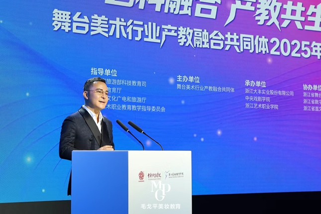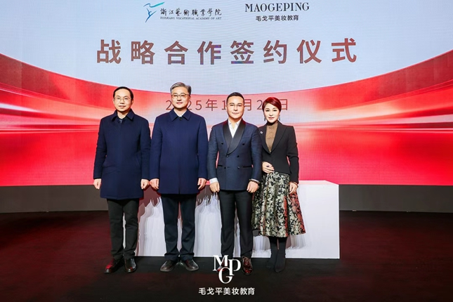 当天,以“艺科融合·产教共生”为主题的舞台美术行业产教融合共同体2025年度会议在浙艺举行。音乐厅内,一场被寄予厚望的合作正式开启。值此浙艺七秩华诞与毛戈平美妆教育建校廿五周年之际,浙艺与毛戈平美妆教育正式签署战略协议,共同宣告“浙江艺术职业学院毛戈平产业学院”的成立。