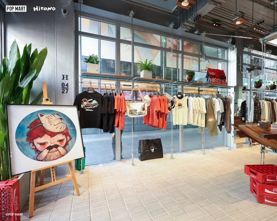开业期间,Hirono小野主题店发售了HIRONO漂浮市场系列、Hirono × CLOT-阴阳陶瓷香炉黑白、不会说话的狐狸等涵盖服饰、版画在内的多款门店限定衍生品,在漂浮市场系列中,Hirono小野化身船夫漂浮于水上市场,与实体空间的设计叙事紧密呼应,获得大量粉丝青睐和好评。