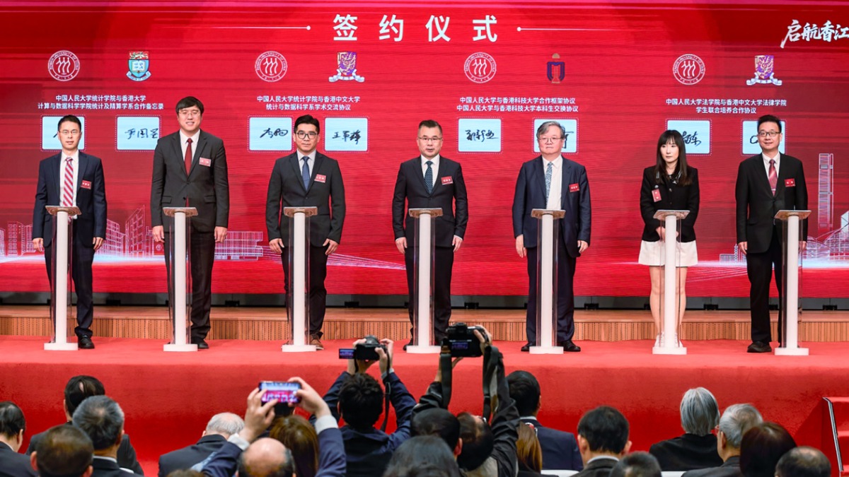 为进一步深化与香港高校的交流合作,中国人民大学秉持“优势互补、资源共享、务实合作、互利共赢”原则,与香港科技大学签署合作框架协议和本科生交换协议。中国人民大学法学院与香港中文大学法律学院,中国人民大学统计学院与香港中文大学统计与数据科学系、香港大学计算与数据科学学院统计及精算学系签署学生联合培养、学术交流等协议。