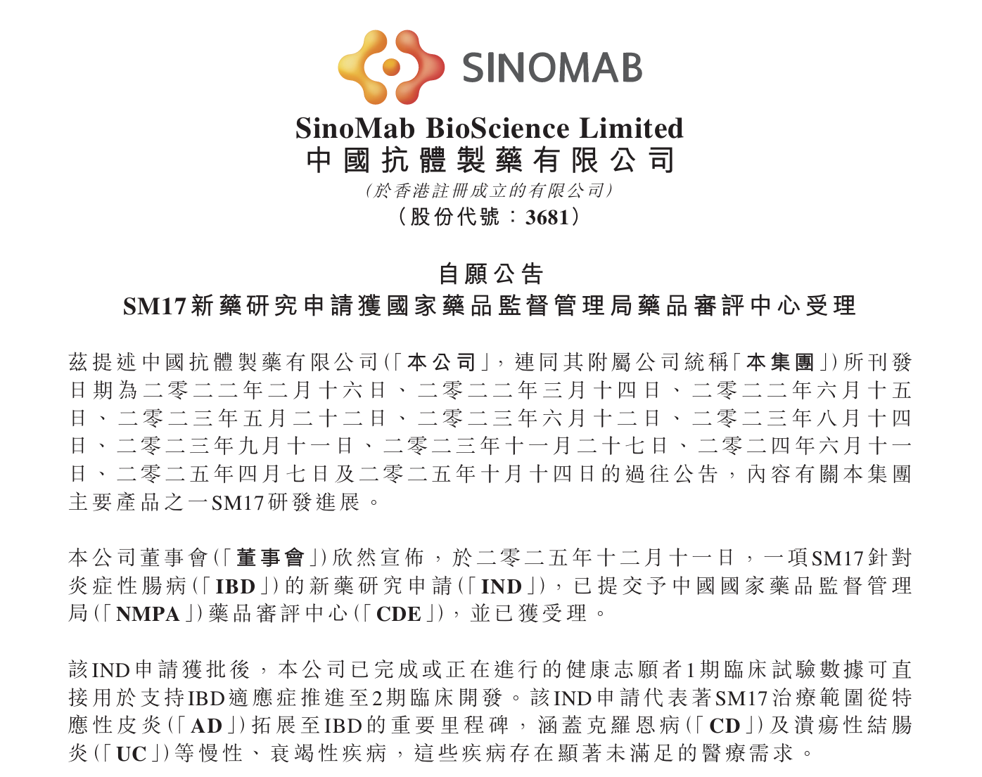 首先,SM17的剂型转换接近完成,有望极大提升商业吸引力。其皮下注射剂型桥接试验已完成首个队列给药,预计最早于2026年2月底完成。