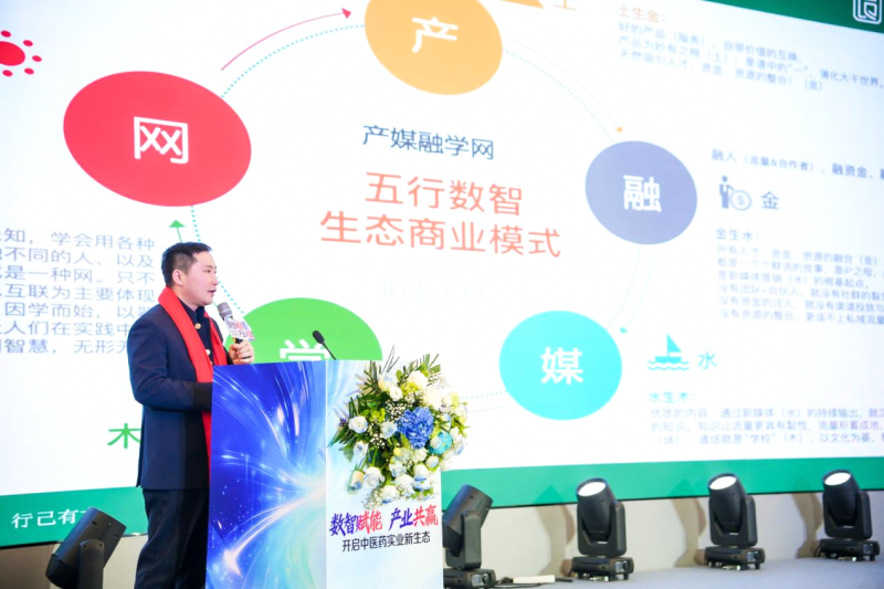清晨8时许,与会嘉宾穿过名为“数字中医彩虹门”的入场通道,大屏幕上动态演绎着从《黄帝内经》竹简到现代数智星球的千年演变史,传统文化的厚重感与数字科技的未来感在此交汇。会场内,弧形LED巨幕、环绕式灯光与融入发光经络、悬浮本草植物的艺术装置,共同构建了一个沉浸式的叙事空间。