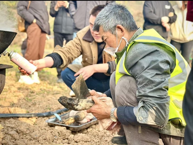 这边火石岩村的宴席吃得热火朝天,那边龙泉驿的一场杀猪宴却在举办前夜紧急“泡汤”。1月13日,网红“假老练”(四川方言版《猫和老鼠》配音演员)联合企业发起刨猪宴活动,直播中56万人观看,近1万人表示要参加。发起人连夜调来挖掘机清理场地、布置桌椅,本想办一场“热热闹闹的杀猪饭”,结果越筹备越慌——场地是临时找的田坝,凹凸不平全是碎石枯枝,连个正经厕所都没有;预计1万人到场,却只有30桌的承载能力,交通、医疗、垃圾处理全是问题。