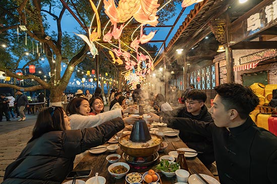 以木心先生笔下的文学意境为底色,景区在冬季“容易钟情 暖锅夜酒”主题活动基础上进行升级,于灵水居和昭明书院打造“无量贪杯新春大集”,为游客奉上一场文艺治愈的新春体验。活动围绕木心文学、暖锅夜酒、互动演艺三大核心元素,装点浓郁的新春氛围。