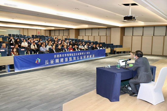 31日下午,紫荆文化集团港澳文化教育交流中心(紫荆维景酒店)掌声雷动,全国思政课教师影响力人物、同济大学李占才教授的《长征关键节点与长征精神解读》讲座让香港教育界领导耳目一新。今年是中国工农红军长征胜利90周年,为了向香港教育界传播长征及长征精神,紫荆文化集团打造“纪念中国工农红军长征胜利90周年”系列活动,本次讲座是其中之一。李占才教授回顾长征的峥嵘岁月,以红军长征的艰苦卓绝与坚定信念为主线,引导香港教育界代表思考如何将坚韧不屈、团结奋斗的精神内核融入育人实践。