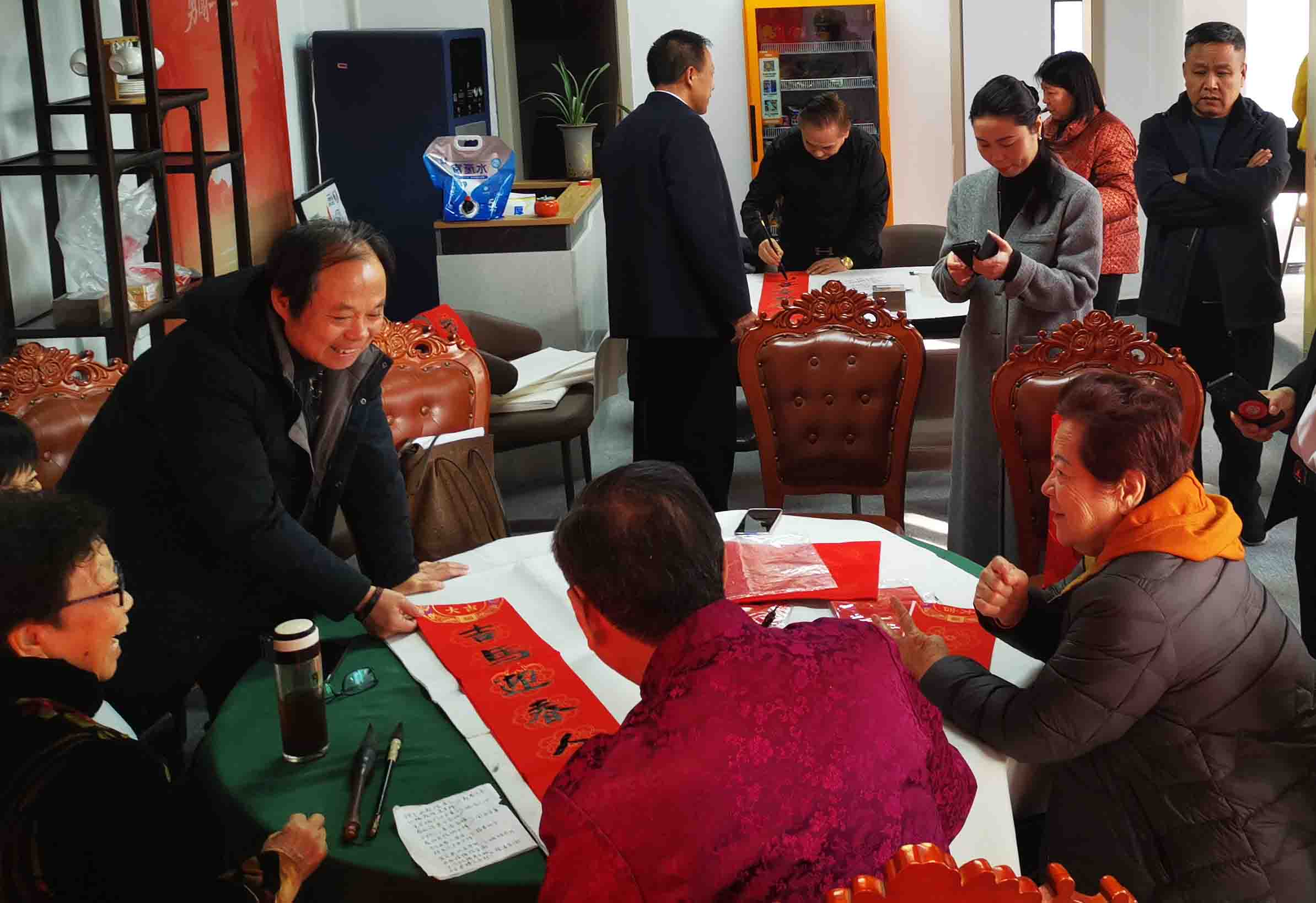 此次展览中还有已故著名诗人马新朝、王绶青的书法小品罕见亮世。包括金石学家、著名收藏家王顺喜,以及河南人民书画院袁忠学、陈玉莲、高敬安、张守镇、耿岐超、张阳、王涛、杜明星等书画代表作位列其中,书法家还为围观群众义写了春联并“送福贺年”。
