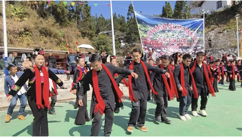 活动当日,迪气苗寨处处洋溢着喜庆氛围。为迎接远道而来的芦笙队亲友,全村村民身着盛装,在道路两旁列队相迎,组成特色“迎亲团队”。