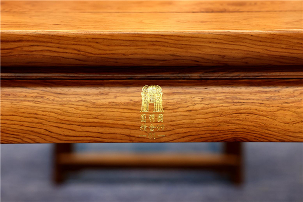 作为明式家具艺术的集大成之作,《精舍》涵盖书案、官帽椅与成对书架,完整复刻传统文人书房的核心形制与精神内核,尽显新时代古典家具“型、材、艺、韵”的经典风骨。本次亮相全国两会的这套作品,是陈玉树《精舍》系列中唯一一套海南黄花梨孤品力作,承袭圆明园皇家古典家具营造技艺根脉,以国家级非遗古典家具营造技艺精工细作,作品更有圆明园官方唯一收藏证书,兼具千年文脉底蕴、皇家正统规制与不可复制的传世收藏价值。器型设计上,书案取经典明式画案形制,方正平直的线条、精巧的榫卯构造搭配标志性马蹄腿案足,尽展传统木作技艺的巧夺天工。恰逢丙午马年与马首回归圆明园六周年,这一传承千年的马蹄腿形制,更被赋予万马奔腾、骐骥驰骋的奋进活力、实干笃行的时代内涵;四出头官帽椅贴合人体工程学打造,实现实用与审美的完美统一;极简书架无多余雕饰,于方寸间藏尽文人风骨。