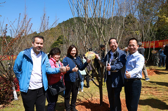 随后,考察团前往思源宝鼎护源林开展植树活动,大家挥锹培土、提水浇灌,亲手种下象征赣港同心的“同源树”,以实际行动守护东江源头绿水青山。香港高级公务员协会主席林文贞表示,安远人民对水源的精心守护令人感恩,希望以树木为媒,让赣港一家亲的情谊根连根、心连心。
