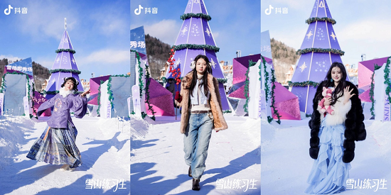 “雪山练习生”正是巨量引擎精准卡位冰雪消费新趋势的产物。在长白山雪场,30位来自抖音平台美妆、穿搭、摄影、舞蹈、体育等领域的创作者变身“雪山练习生”,通过雪地潮酷个人秀和不同点位的打卡游戏,获取活动徽章,达成“雪位出道”。伴随着创作者们对活动内容的记录和分享,“雪山练习生”的热度从线下蔓延至线上,转变为一场全民参与的冰雪狂欢。大众讨论的内容也从活动本身拓展至玩雪装备、出片打卡点等诸多维度,为“冰雪美学”注入更丰富的内涵,让抖音平台成为全网冰雪内容高地。