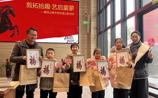 黄铁山美术馆主办的非遗剪纸拓印公益教育系列活动从1月25日持续至3月18日,10场剪纸、拓印亲子体验课免费对公众开放,汪阳华总能用通俗的语言化解技术难点:“剪花瓣要像撕棉花一样轻柔,别着急;刻细节就像写毛笔字,要凝神静气。”她不仅教技艺,更传文化:“咱们剪的团花,每一片花瓣都代表着团圆,过年贴在家里,福气就来啦!”