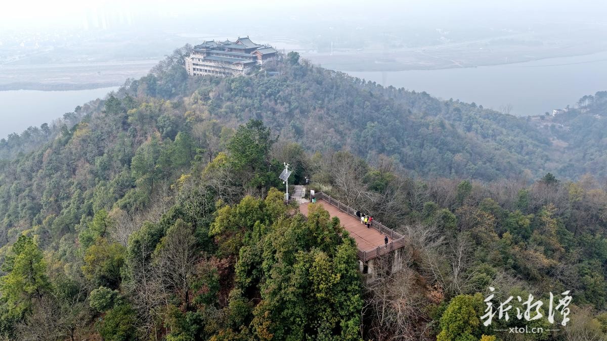 沿着清乾隆年间的青石板古蹬道拾级而上,风拂林梢,鸟鸣山幽;登顶俯瞰,湘江蜿蜒出温柔的“微笑曲线”,长株潭三市轮廓在云霭间若隐若现,顿生“一览众山小”的豪情。