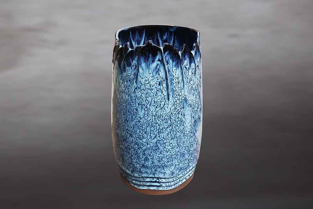 在造型设计、釉料配制方面,李海峰锐意进取,大胆创新。他的作品釉色以蓝花釉为主要特征,黑唐新花、珊瑚红、帝王绿更是别具一格。同时,他坚守传统烧制技艺,特别是柴烧、煤烧的烧成工艺。这种“承古开新”的创作理念,使其作品既保持了钧瓷的传统神韵,又呈现出鲜明的时代特征。